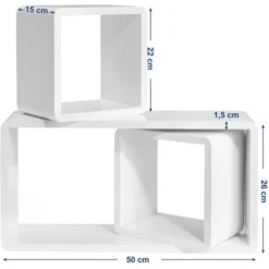Songmics Wandregal LWS50WT, Weiß, 3-teilig, 22cm / 50cm, Aus Holz