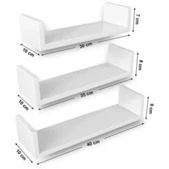 Songmics Wandregal LWS40WT, Weiß, 3-teilig, 40cm / 35cm / 30cm, Aus Holz