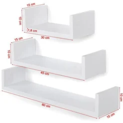 Songmics Wandregal LWS66W, Weiß, 3-teilig, 60cm / 45cm / 30cm, Aus Holz