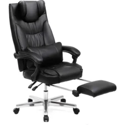 Songmics Gaming-Stuhl OBG073B03, Mit Fußstütze, Schwarz / Grau, Kunstleder, Kopfstütze, Bis 150 Kg