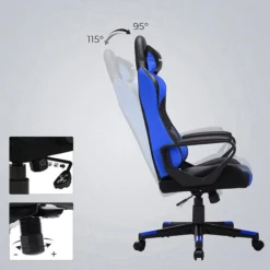 Songmics Gaming-Stuhl RCG011B02, Schwarz / Blau, Kunstleder, Kopfstütze, Belastbar Bis 150 Kg