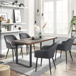 Songmics Esszimmerstuhl LDC087G01, Mit Armlehnen, Samt, Dunkelgrau
