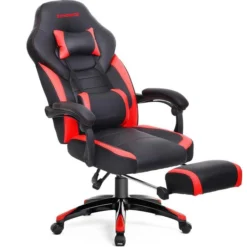 Songmics Gaming-Stuhl OBG77BR, Mit Fußstütze, Schwarz/rot, Kunstleder/Netz, Bis 150 Kg
