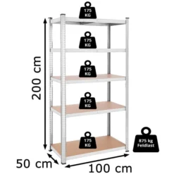 Songmics Schwerlastregal Silber, 100 X 200 X 50cm, 175kg / Boden, Steckregal, 5 Holzböden