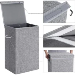 Songmics Wäschekorb LCB01G, Grau, Mit Deckel, Leinenimitat, Faltbar, 36 X 66 X 36 Cm, 85 Liter
