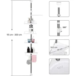 Songmics Duschablage BCB02SW, 25 X 95-300 X 15 Cm, Teleskopregal Mit 4 Ablagen, Ohne Bohren