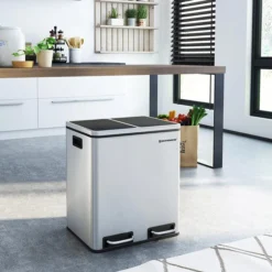 Songmics Mülleimer LTB30L, Silber, Aus Edelstahl, 2 X 15 Liter