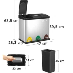 Songmics Mülleimer LTB45L, Silber, Aus Edelstahl, 3 X 15 Liter