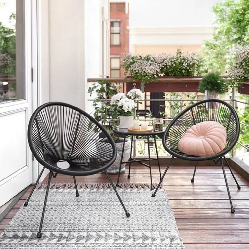 Die moderne Ästhetik erzeugt eine mexikanische Urlaubsatmosphäre auf Balkonen, Terrassen und in Innenhöfen. Entspannen Sie sich auf diesem Acapulco-Stuhlset im Freien und genießen Sie eine frische Brise, oder verwenden Sie es im Innenbereich? Natürlich auch gut! Diese Sitzgruppe verwandelt einen kleinen Raum im Handumdrehen in einen bequemen Aufenthaltsort.