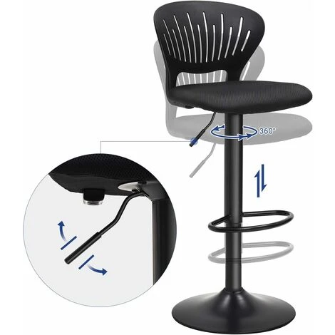 Falls Sie über einen solchen Essbereich nachdenken, benötigen Sie natürlich auch die passenden Barstühle. Unser 2er Set in elegantem Schwarz ist um 22 cm höhenverstellbar und eignet sich damit für verschieden hohe Bartische. Ein weiterer Vorteil der Barhocker ist zudem die ergonomische Ausformung der leicht flexiblen Rückenlehne sowie die gemütliche Polsterung aus Schaumstoff und Meshgewebe. Zudem sind die modernen Sitzmöbel um 360° drehbar.