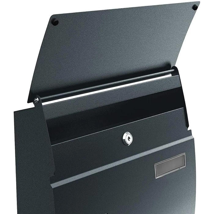 sonstiges: Zylinderschloss mit 2 Schlüsseln, Einwurf von oben, mit Abdeckung, Klarsichtfenster mit Halter für Namensschild, durch das Sichtfenster an der Tür sieht man sofort, wenn Post eingeworfen wurde