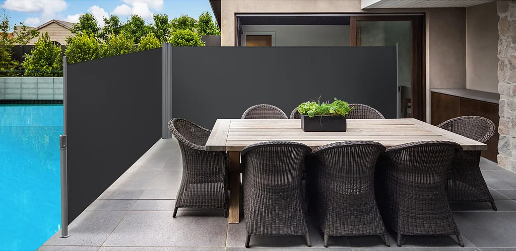 Einfache Nutzung: Jede Seite wird an einem Griff ausgezogen und sicher am Seitenpfosten befestigt. Dank der automatischen Rückrollfunktion fährt das Markisentuch ganz einfach wieder zurück. Im Markisenkasten bleibt es schmutz- und staubfrei