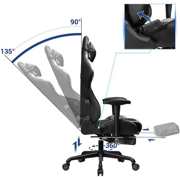 Ausstattung: mit Kopfstütze, mit Fußstütze, mit Lordosenstütze