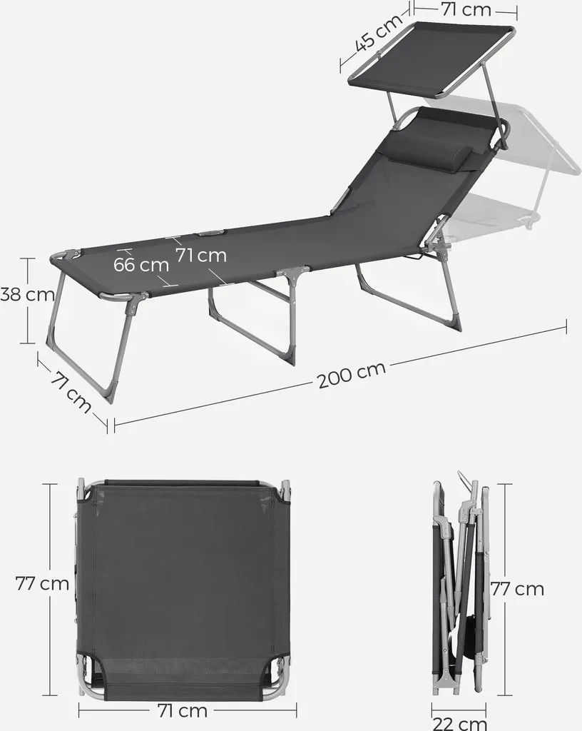 – Größe zusammengeklappt: 22 x 71 x 77 cm (T x B x H)