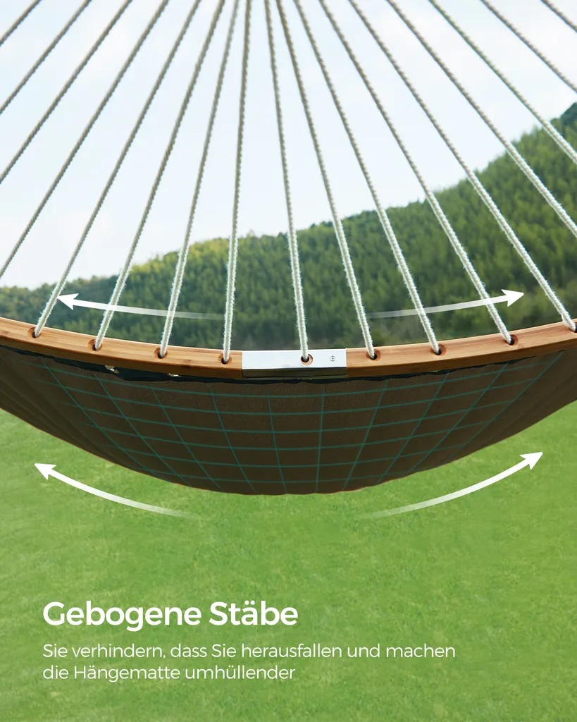 - [Sicherheit und Stabilität] Diese Hängematte ist mit gebogenen Stäben ausgestattet, um ein Umkippen zu verhindern, was sie sicherer und stabiler macht als die üblichen Hängematten mit geraden Stäben. Darin können Sie in aller Ruhe Entspannung pur genießen
