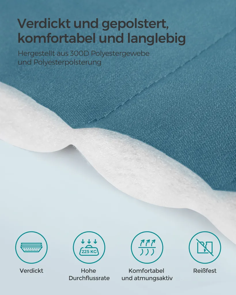 - Komfortabel: Hergestellt aus 300D Polyester-Gewebe, weiche Polsterung und Kissen.