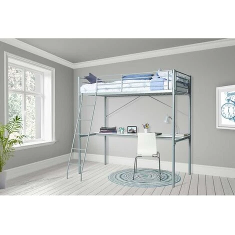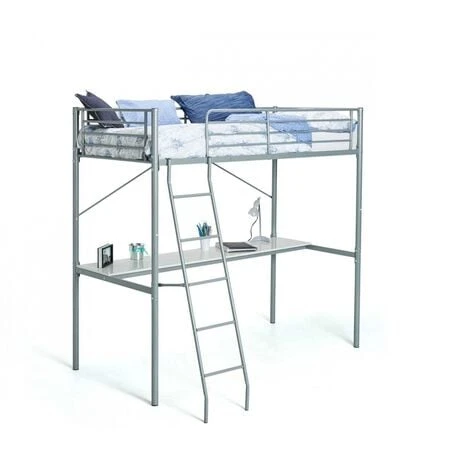 Wenn Sie den verfügbaren Platz in Ihres Schlafzimmers maximal ausnutzen möchten, dann wählen Sie das Hochbett mit Schreibtisch Leo. Es handelt sich um ein Hochbett mit Metallstruktur und integriertem Schreibtisch im unteren Bereich.