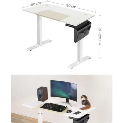 - [4 Speichertasten und Auffahrschutz] Sie können die Höhe des elektrischen Schreibtischs zwischen 72 und 120 cm verstellen und 4 bevorzugte Höhen speichern. Die Höhenverstellung stoppt und fährt etwas zurück, wenn sie auf ein hartes Hindernis trifft