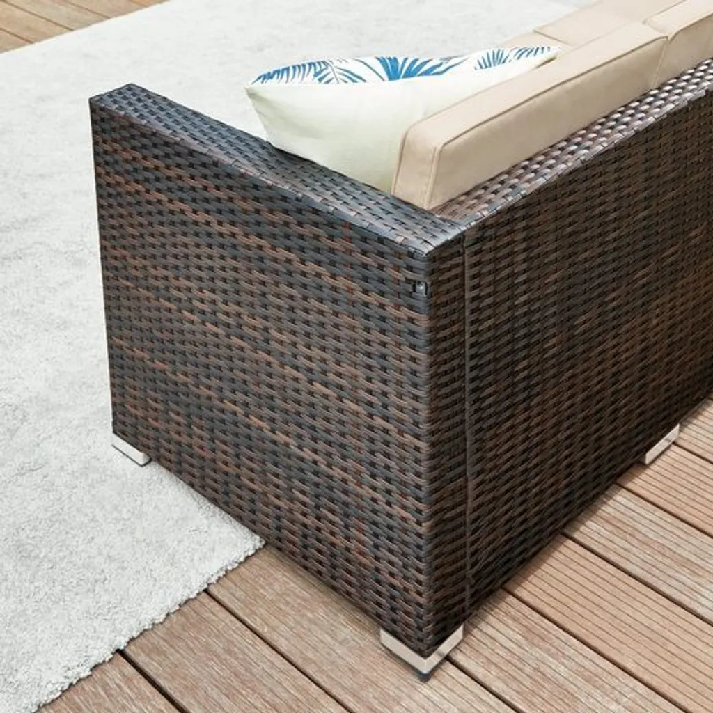 Flexibles Design: Das 3-Sitzer Sofa, der Hocker und der Couchtisch – Stellen Sie sie zusammen oder getrennt auf und verwenden Sie sie je nach Bedarf. Gestalten Sie Ihr Zuhause mit diesem Gartenmöbelset ganz individuell!