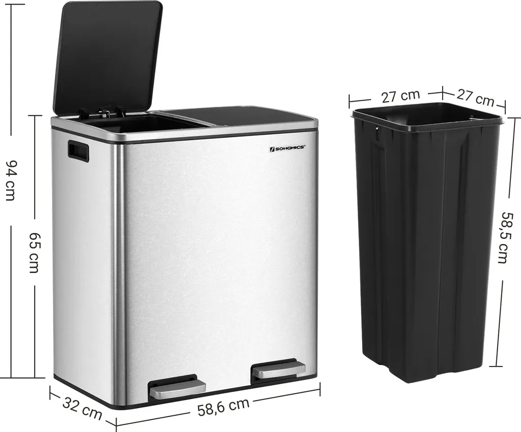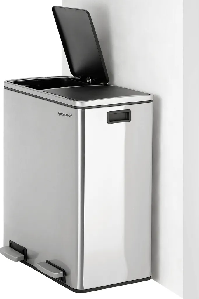 Durch 2 getrennte Inneneimer erleichtert der 60 L Mülleimer das Trennen von Abfällen z.B. von Restmüll und Bioabfall. Zudem spart er Platz in Ihrem Haus