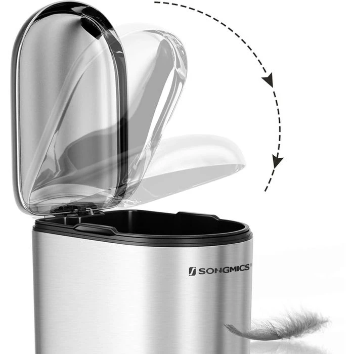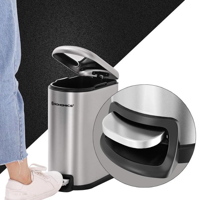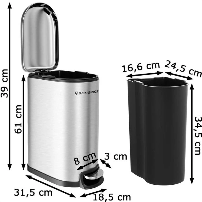 sonstiges: mit Tretmechanik aus stabilem Stahl und mit herausnehmbarem schwarzem Kunststoffeimer, gedämpfter Deckel-Schließ-Mechanismus Soft Close, luftdichter Deckel schützt vor unangenehmen Gerüchen, Deckel kann dauerhaft geöffnet bleiben, besonders platzsparend für enge Nischen
