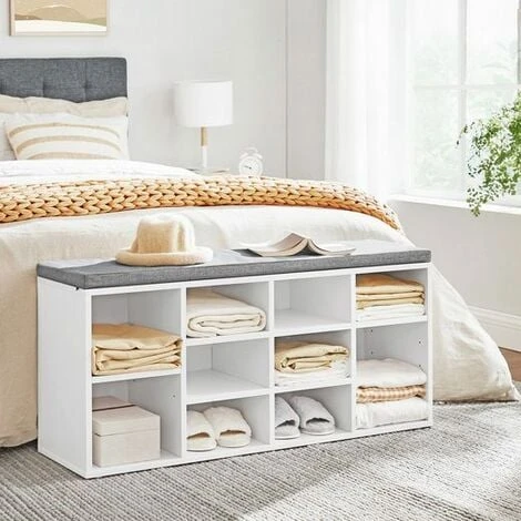 - NEHMEN SIE PLATZ: Geraten Sie beim Anziehen Ihrer Schuhe regelmäßig aus dem Gleichgewicht? Setzen Sie sich bequem auf diese gepolsterte Schuhbank und binden Sie Ihre Schuhe mühelos zu. Die robuste Struktur aus Klasse E1 Holzspanplatten ist mit bis zu 150 kg belastbar. Der abnehmbare Bezug aus Leinenimitat lässt sich leicht reinigen