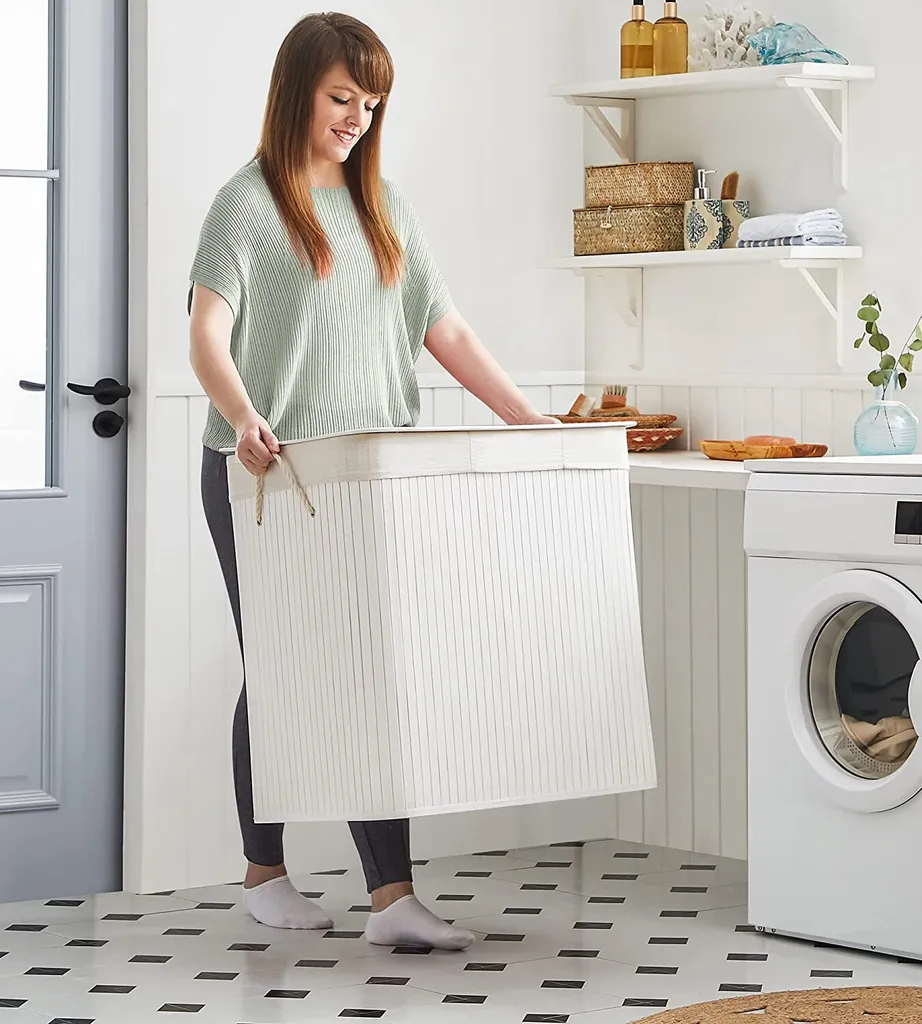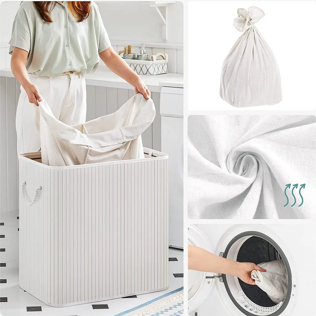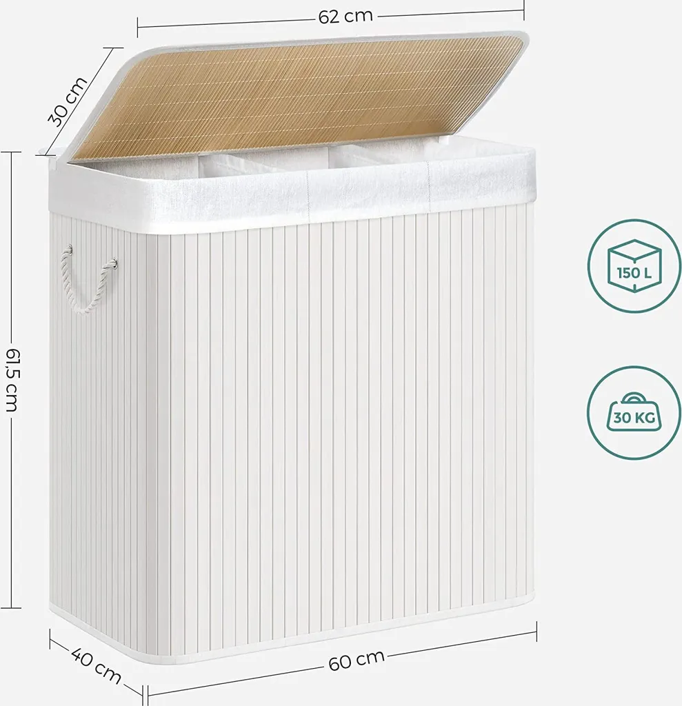 Was Sie bekommen: Einen 150-Liter-Wäschesammler mit 3 Fächern von SONGMICS, welcher aus robustem Bambus besteht und viel Stauraum für Ihre Schmutzwäsche sowie Bettwäsche bietet. Gönnen Sie sich diese Truhe und erleichtern Sie Ihren Waschtag!