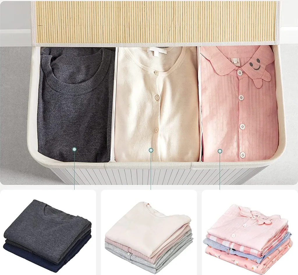 Sortiert einwerfen: Während Sie Ihre hellen, dunklen und empfindlichen Kleidungsstücke in diesen Wäschekorb mit 3 Fächern hineinlegen, sortieren Sie gleichzeitig alles. So müssen Sie am Waschtag nicht durch die schmutzige Wäsche wühlen, um sie zu trennen
