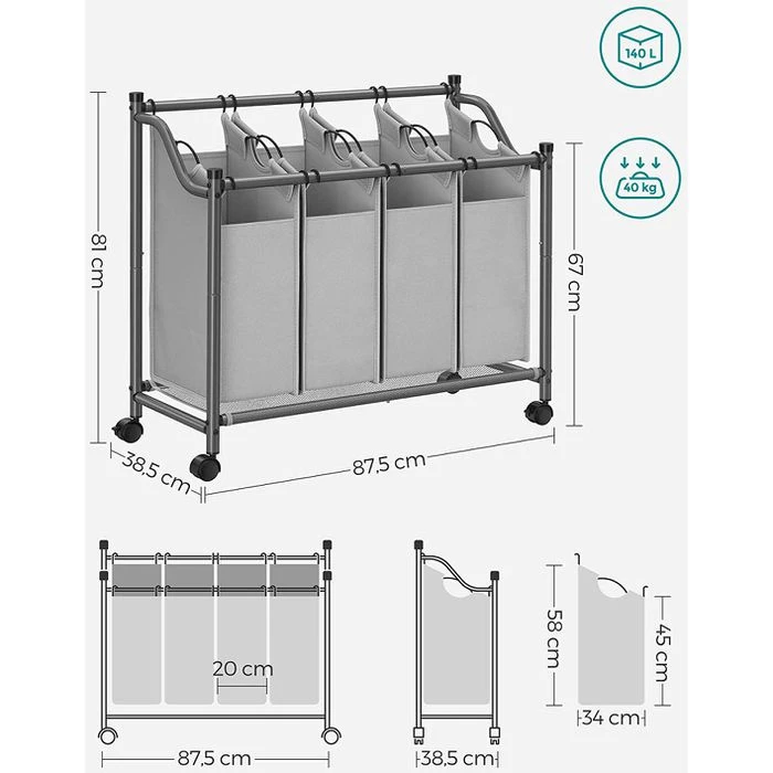 • Einzeln herausnehmbare Wäschebeutel mit Tragegriffen