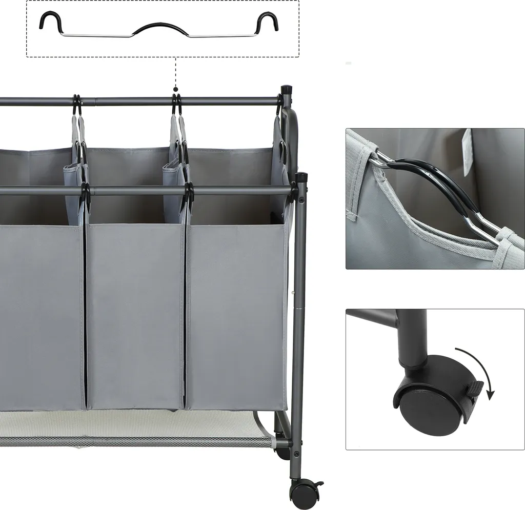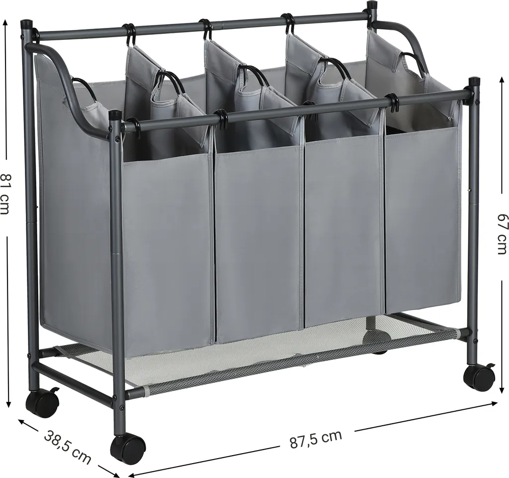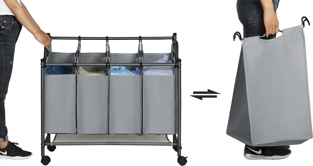Die 4 Stofftaschen in elegantem Grau sind einzeln abnehmbar und durch die praktischen Henkel einfach zu transportieren. So müssen Sie nicht den gesamten Wäschekorb zur Waschmaschine schleppen