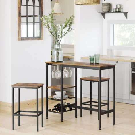 - SIE WOLLEN DIE WAHRHEIT HÖREN? Ihr neuer Essbereich mit diesem schicken Bartisch sieht wirklich grandios aus, ganz ehrlich! Schwarzes Stahlgestell, Vintage-Oberfläche, 2 Ablagen für Weinflaschen und 2 Halterungen für Gläser – Ästhetik trifft Funktionalität