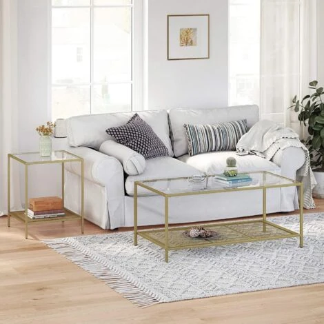 Moderner LookDie Kombination aus transparenter Oberfläche und prunkvoller Vergoldung sowie ein schlichtes Design erschaffen einen modernen Couchtisch. | Stabil und ausgeglichenDie verstellbaren Füße halten den Couchtisch im Gleichgewicht und schützen Ihren Boden vor Kratzern. | Einfache MontageDank der simplen Struktur des Tisches werden Sie ihn im Handumdrehen aufgebaut haben. |
