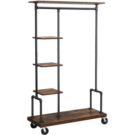 Stellen Sie Ihren neuen Garderobenständer zur Schau! Ein stilvolles Möbelstück sollte nicht im dunklen Keller versteckt werden! Stellen Sie diesen Garderobenständer im Industrie-Design in Ihr Ankleidezimmer, Schlafzimmer oder Wohnzimmer, damit er alle Blicke auf sich zieht. Die Kombination aus Vintage Ablagen und Stahlrohren bringt einen urbanen Hauch in Ihr Zuhause. Präsentieren Sie Ihre neue Garderobe sowie Ihren Sinn für Mode stilvoll!