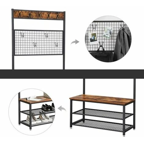 - ALLES, WAS SIE BRAUCHEN: Den ganzen Tag gearbeitet, kommen Sie nach Hause und hängen Ihren Mantel, Hut sowie Schal einfach an 5 Doppelhaken auf, dann setzen Sie sich gemütlich auf die Bank, um Ihre Schuhe auszuziehen, und stellen sie auf 2 Metallablagen ab
