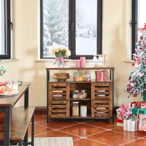 1.Überall charmant: Industrie-Design-Akzente und Vintage-Töne kreieren den warmen und einladenden Look dieses Sideboards, sodass es perfekt in Ihren Flur, in Ihr Esszimmer, Ihr Wohnzimmer oder andere Räumlichkeiten passt