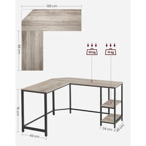 - [Große Arbeitsfläche] Mit einer 138 x 138 cm großen Arbeitsfläche bietet dieser L-förmige Computertisch Platz für 3 bis 4 Computermonitore und bietet Ihnen viel Platz zum Arbeiten und Lernen, damit Sie alles in Reichweite haben