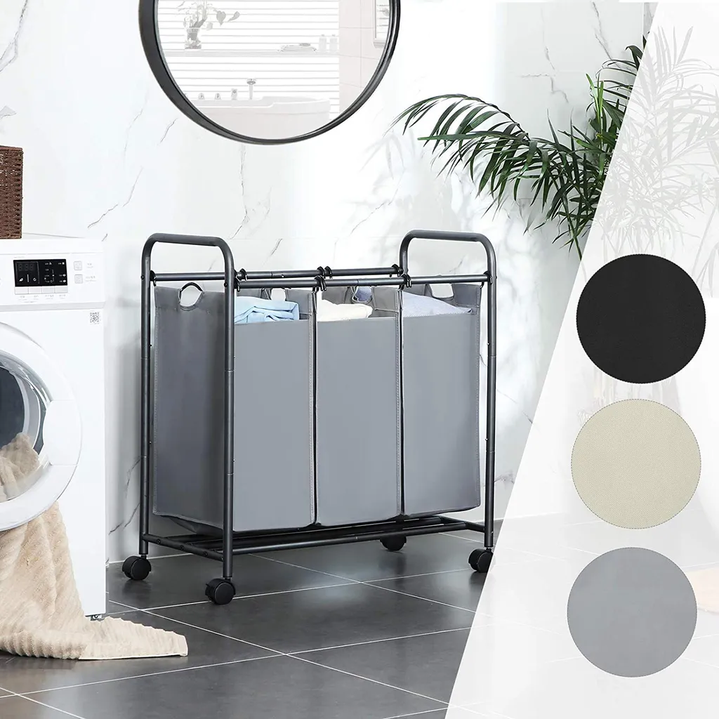 - Schmutzwäsche sortiert verstauen:Mit den 3 separaten Stofftaschen können Sie Ihre Wäsche nach Farben oder Materialien sortieren; so müssen Sie sich keine Sorge darum machen, dass helle Wäschestücke durch die dunklen verfärbt werden. Ferner muss Ihre Feinwäsche so nicht mit der verschwitzten Fitness-Bekleidung gemeinsam in einem Korb liegen.