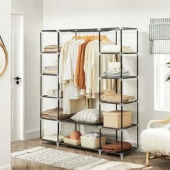Songmics Kleiderschrank XXL 175 X 150 X 45 Cm Faltschrank Stoffschrank Mit Kleiderstange Grau LSF03G