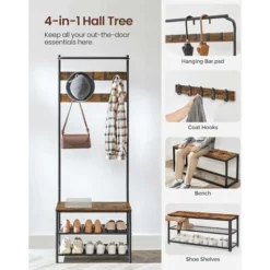 VASAGLE Wandgarderobe Mit Ablage, Wandregal, Mit 5 Abnehmbaren Haken, LCR12BX Von SONGMICS